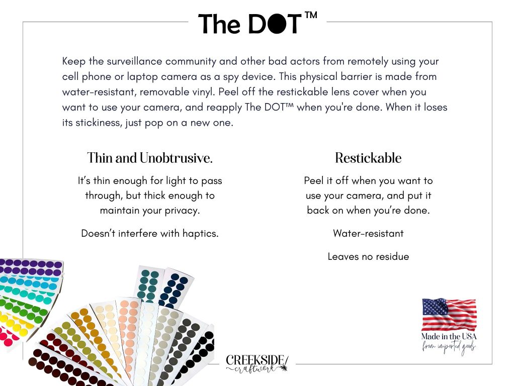 The DOT™ helps you keep the surveillance community and other bad actors from remotely using the camera from your cell phone or laptop as a spy device.